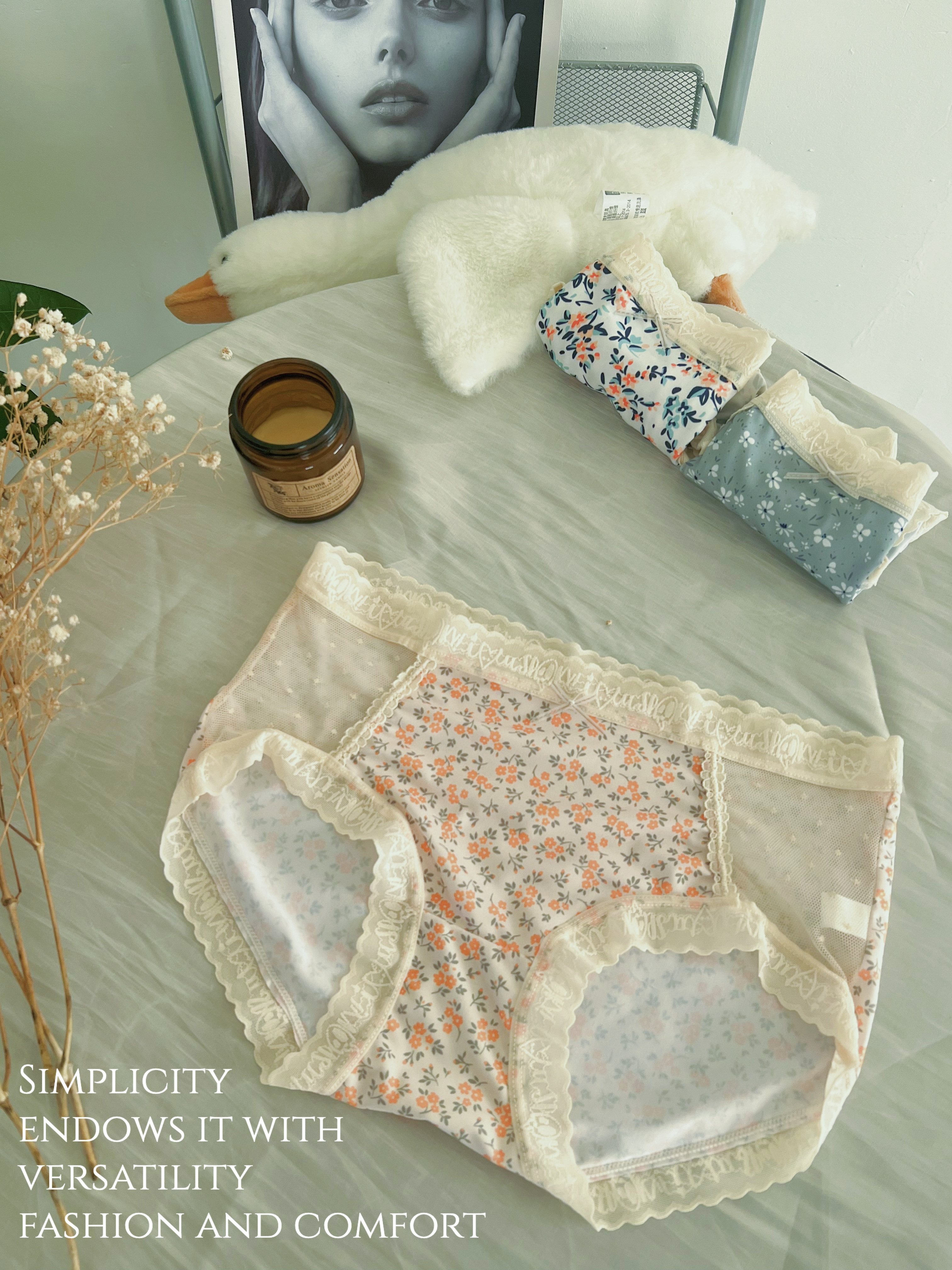 【花鸟设计】蕾丝花朵挂坠秋冬透气中腰女士内裤高弹零感细腻纯欲