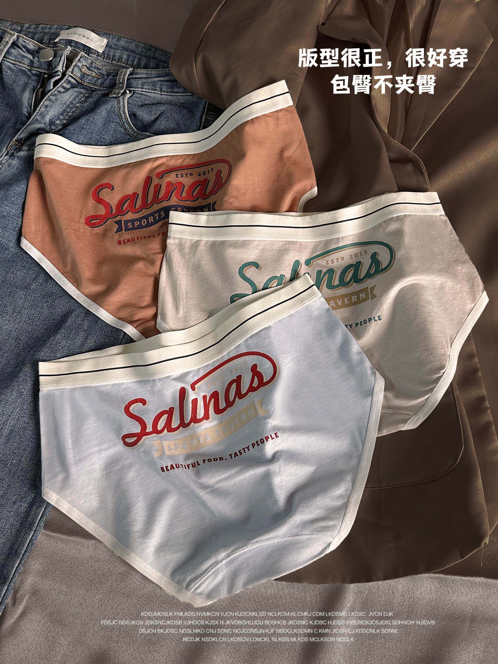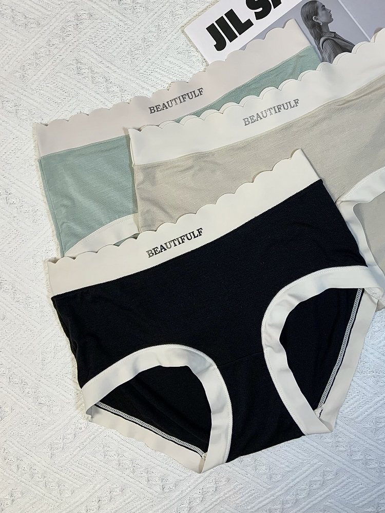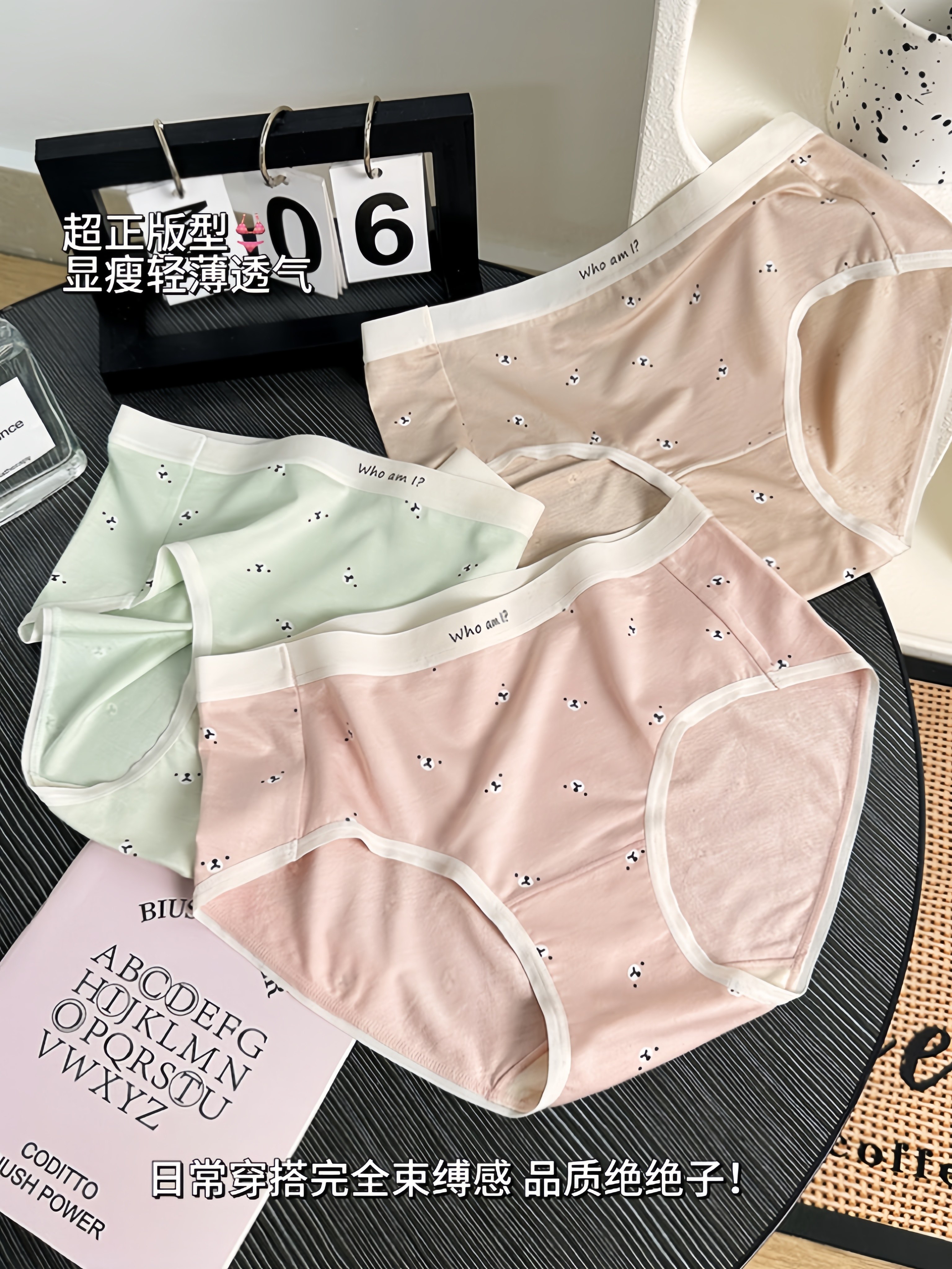 【云感舒适】莫代尔拼接中腰内裤女桑蚕丝底裆印花字母秋冬新款