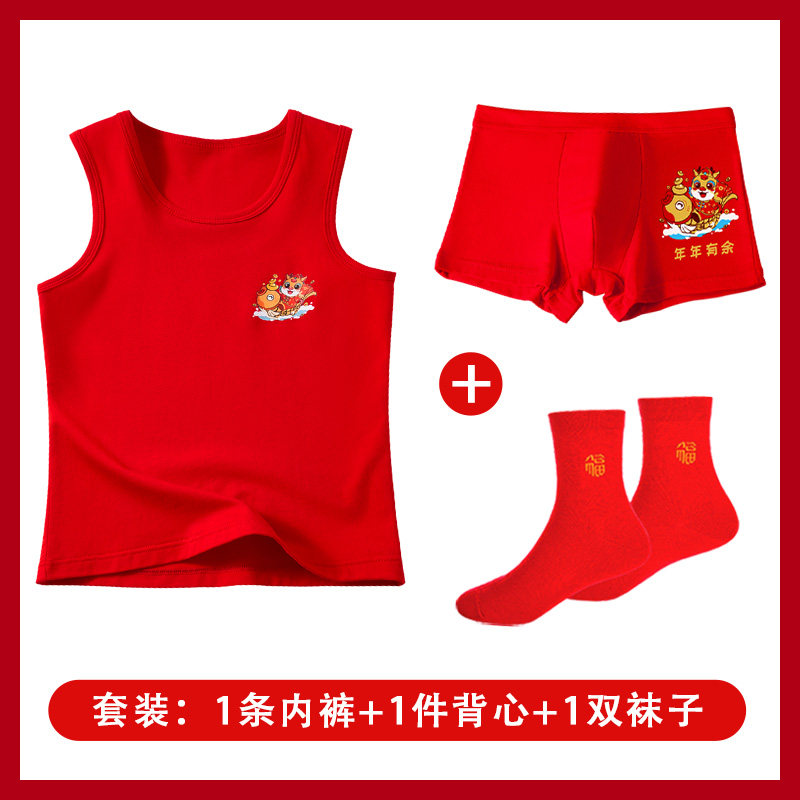 儿童内衣内裤套装纯棉红色背心本命年男童中大童宝宝小孩坎肩12岁