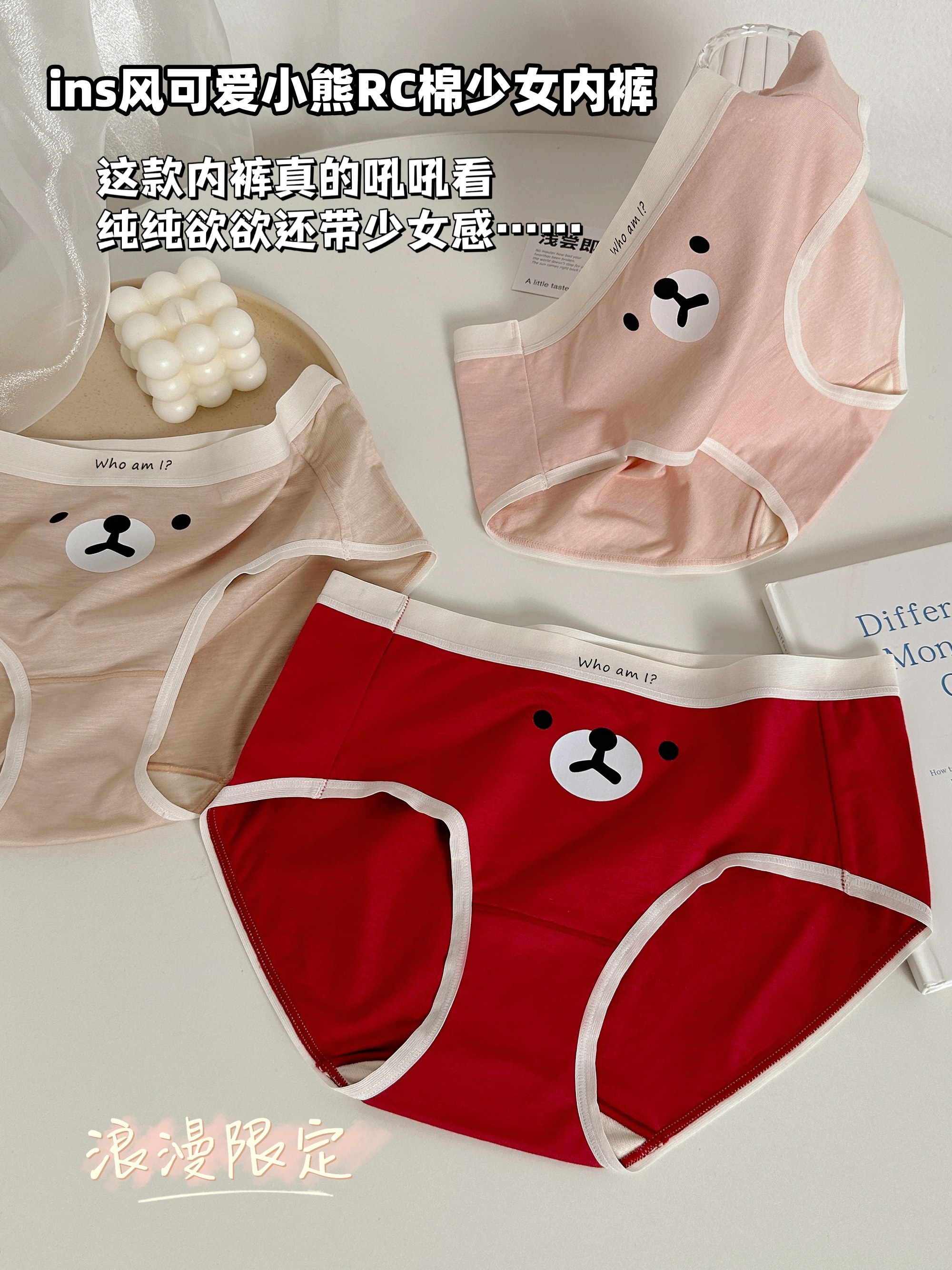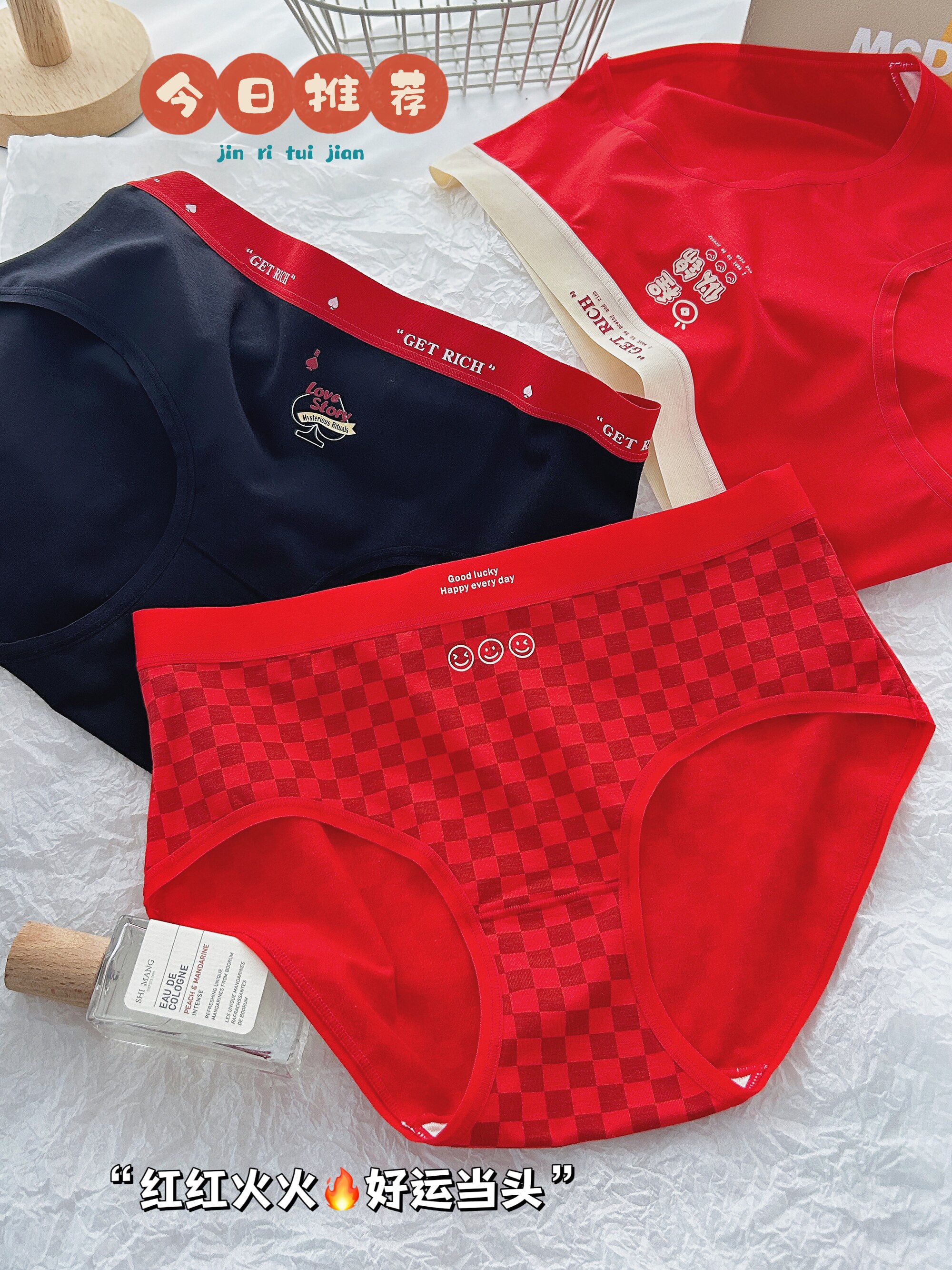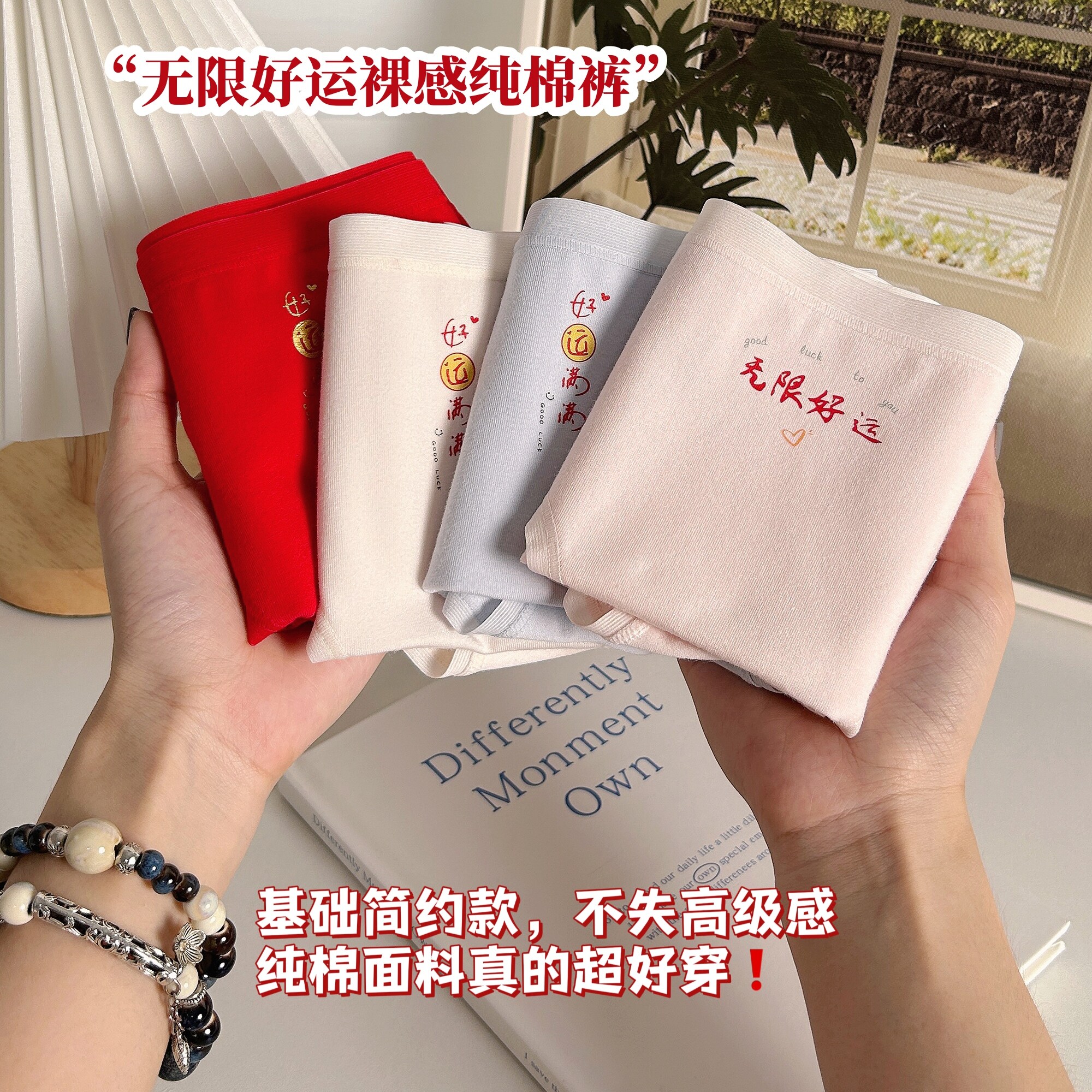 【好运连连】精梳纯棉简约中腰内裤女桑蚕丝底裆春节内裤秋冬新款