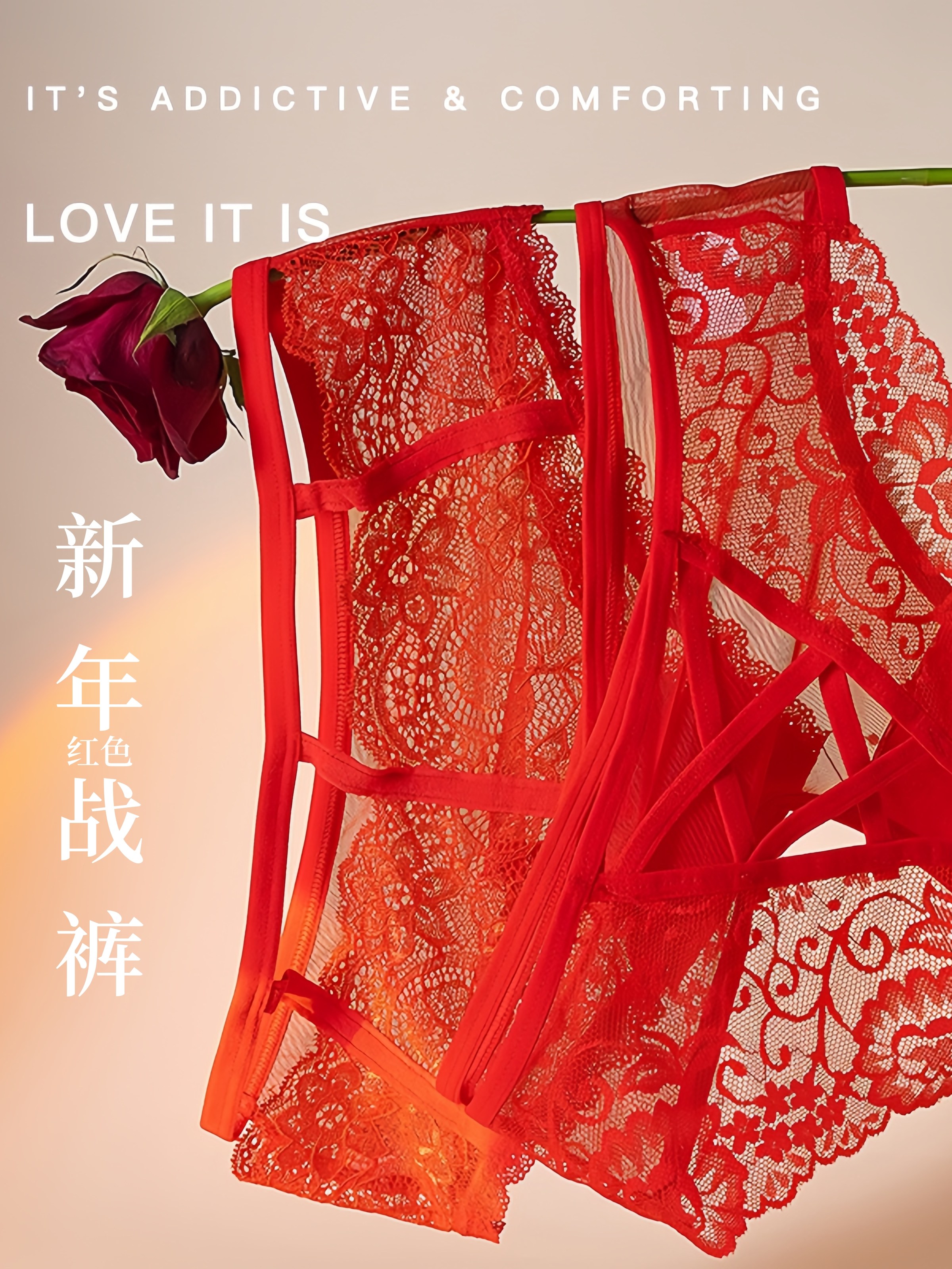 有棵树40支莫代尔本命年三角内裤女蕾丝中腰属龙结婚男士平角内裤