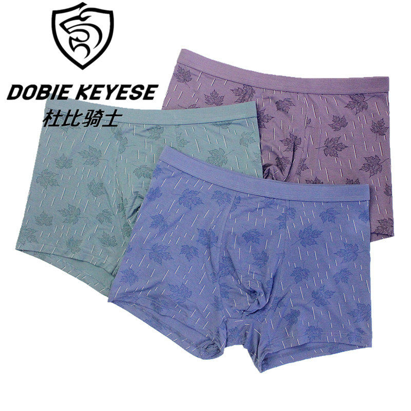 新款杜比骑士10477中高腰树叶印花舒爽透气男士平角内裤2条装
