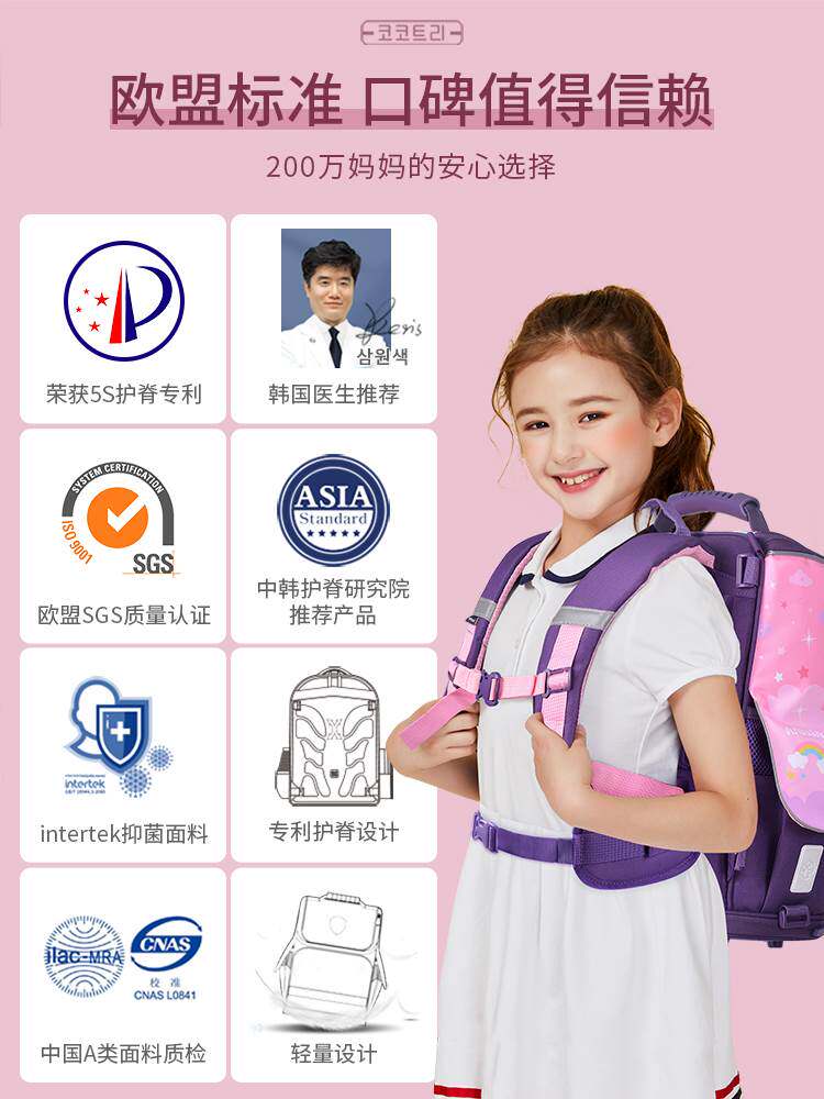 KK树书包女生小学生一二三到六年级儿童超轻护脊减负女孩双肩1一3