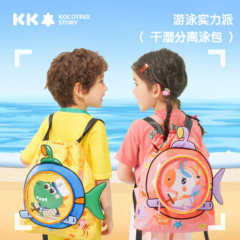KK树儿童干湿分离游泳包男女童专业防水包沙滩装备双肩便携收纳包
