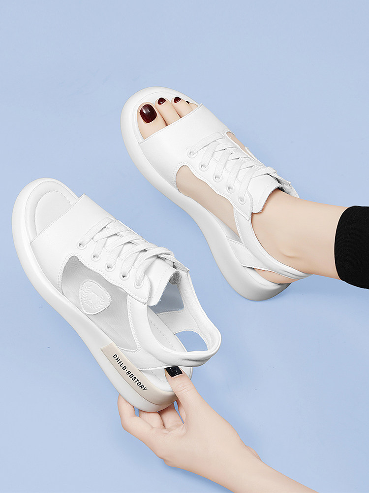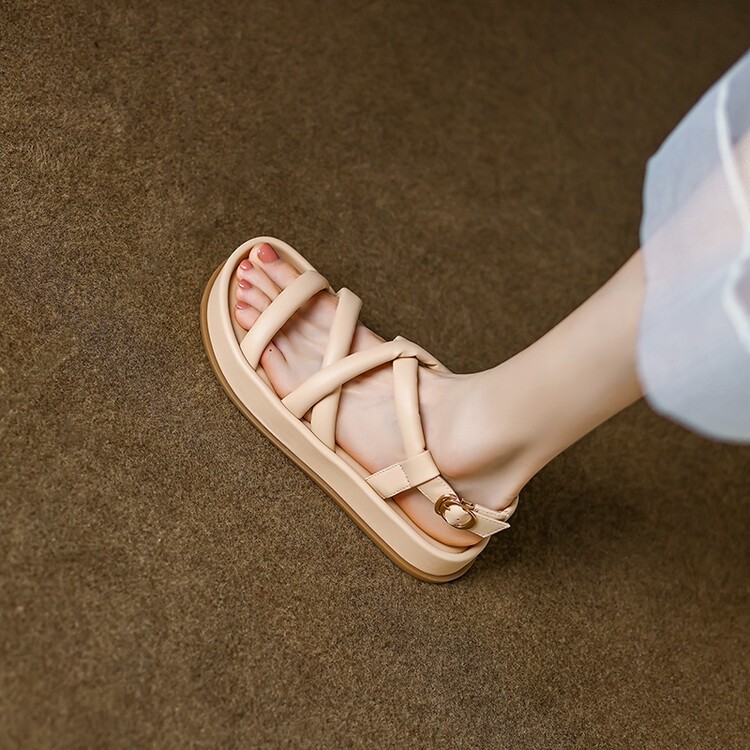 交叉绑带凉鞋女厚底露趾小个子平底休闲沙滩鞋2022夏季新款