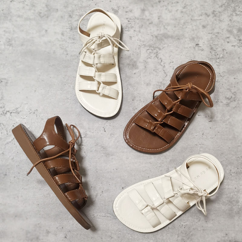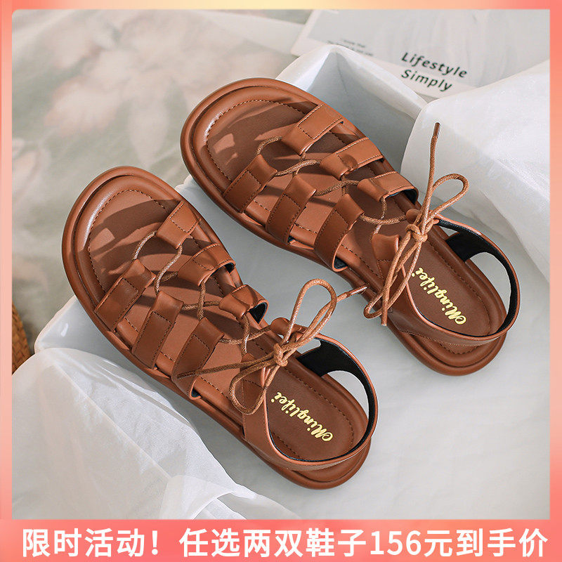 罗马凉鞋女2023夏季新品学生复古百搭休闲平跟平底绑带ins潮女鞋