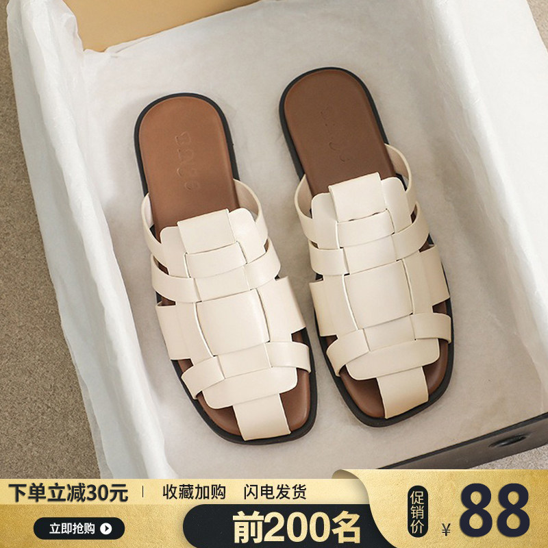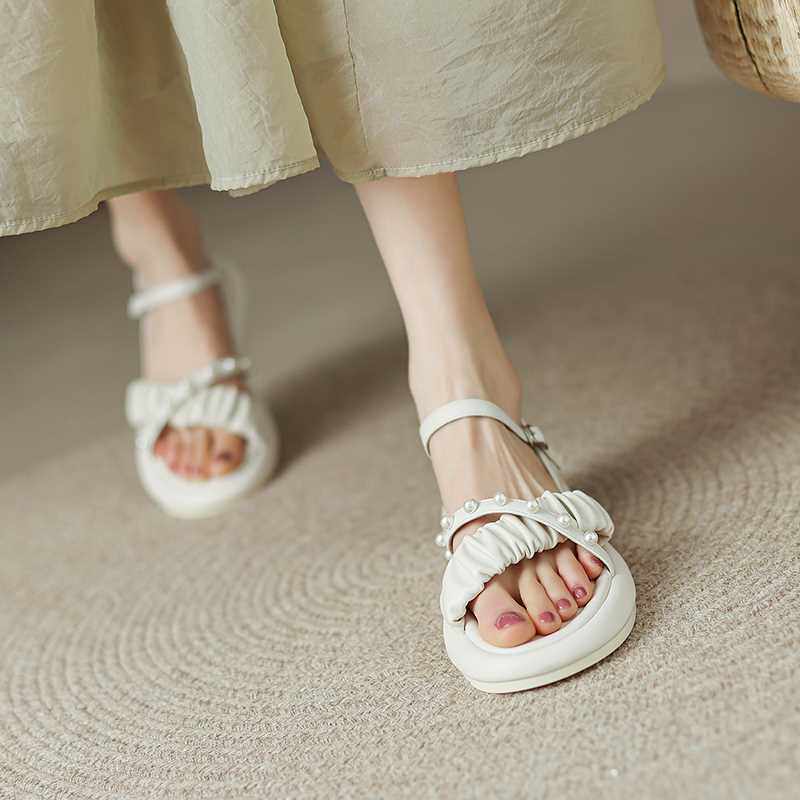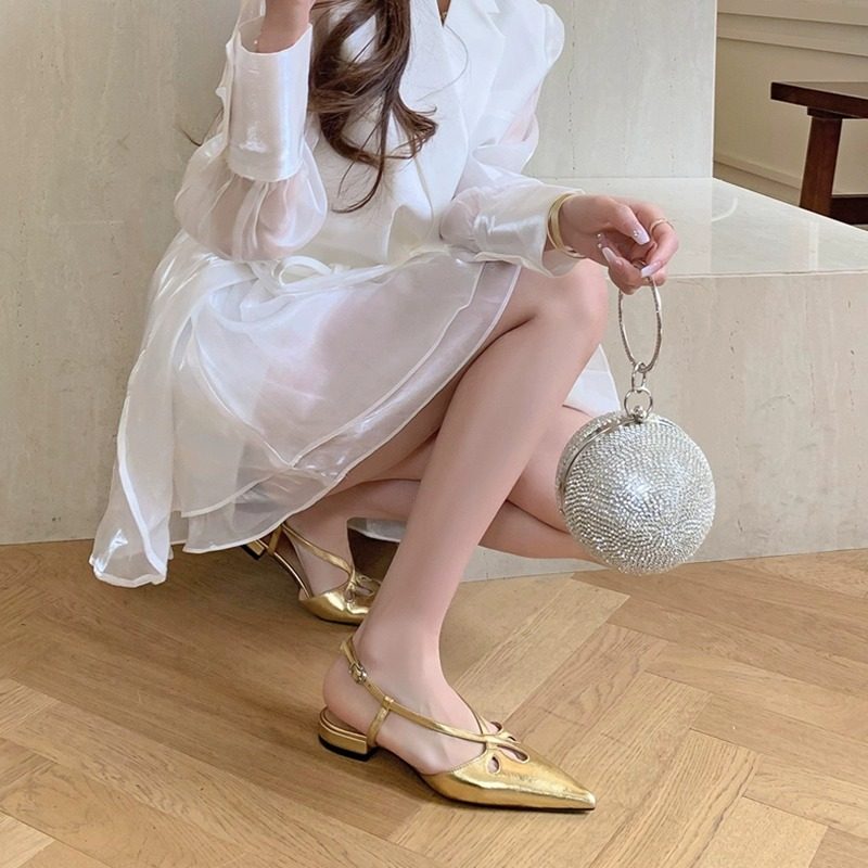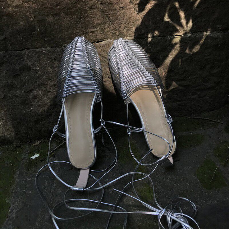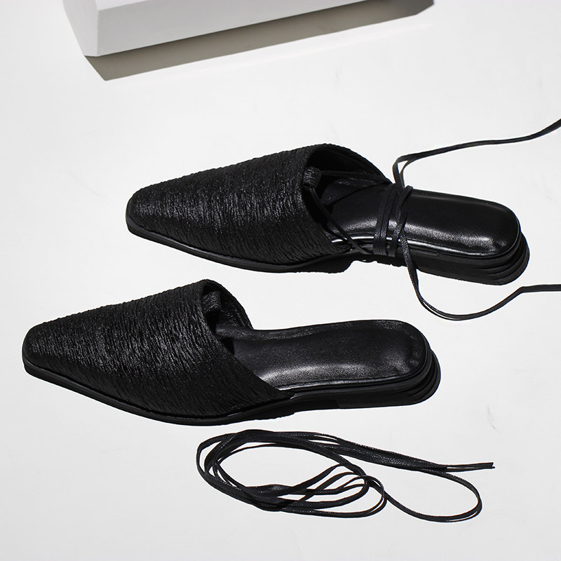 美貌C位~小众设计镂空交叉绑带包头平底凉鞋女后空浅口尖头单鞋