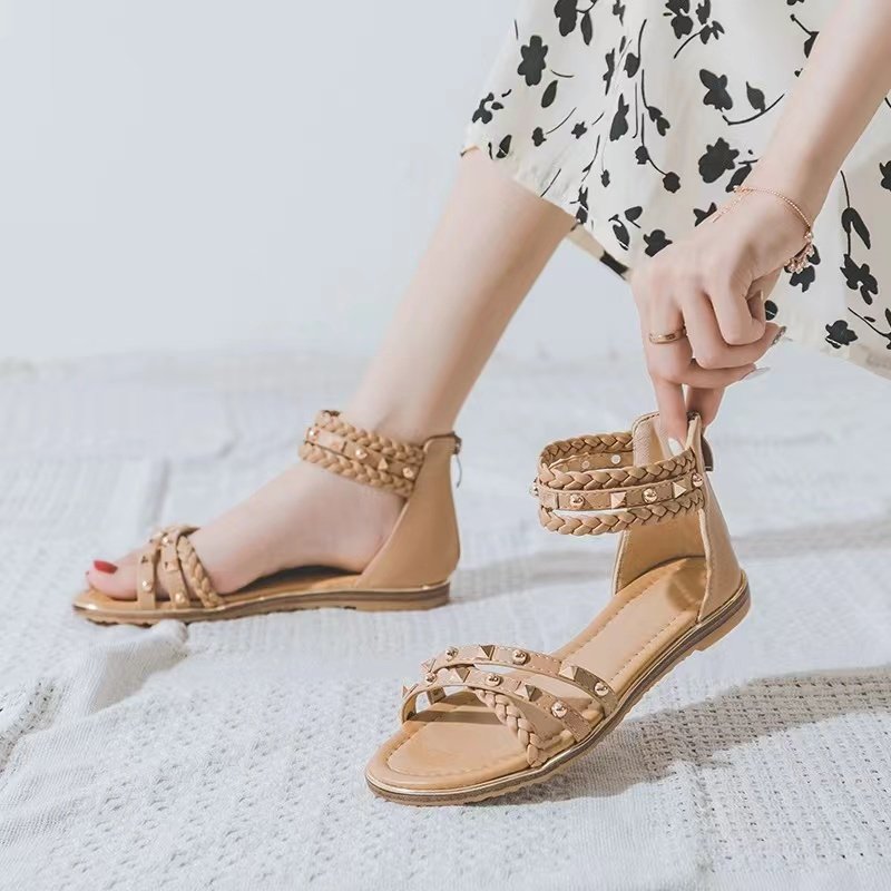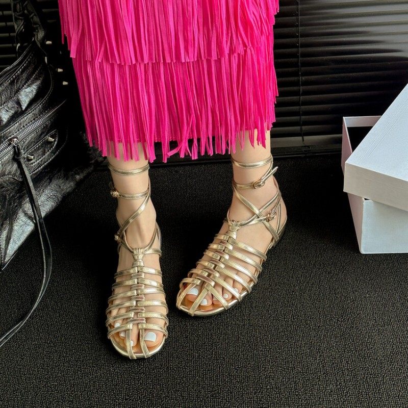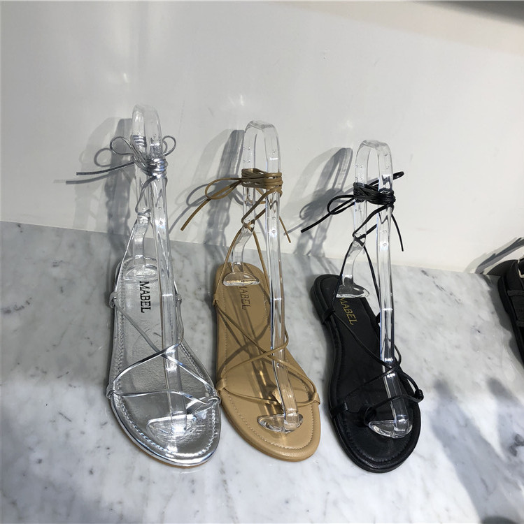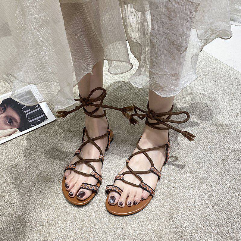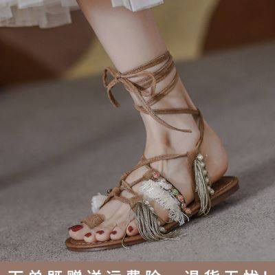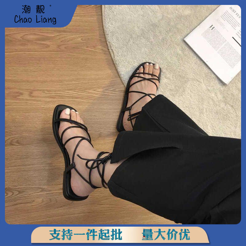 热销绑带凉鞋绝美罗马凉鞋女夏外穿平底风凉鞋配裙子亚马逊独立站