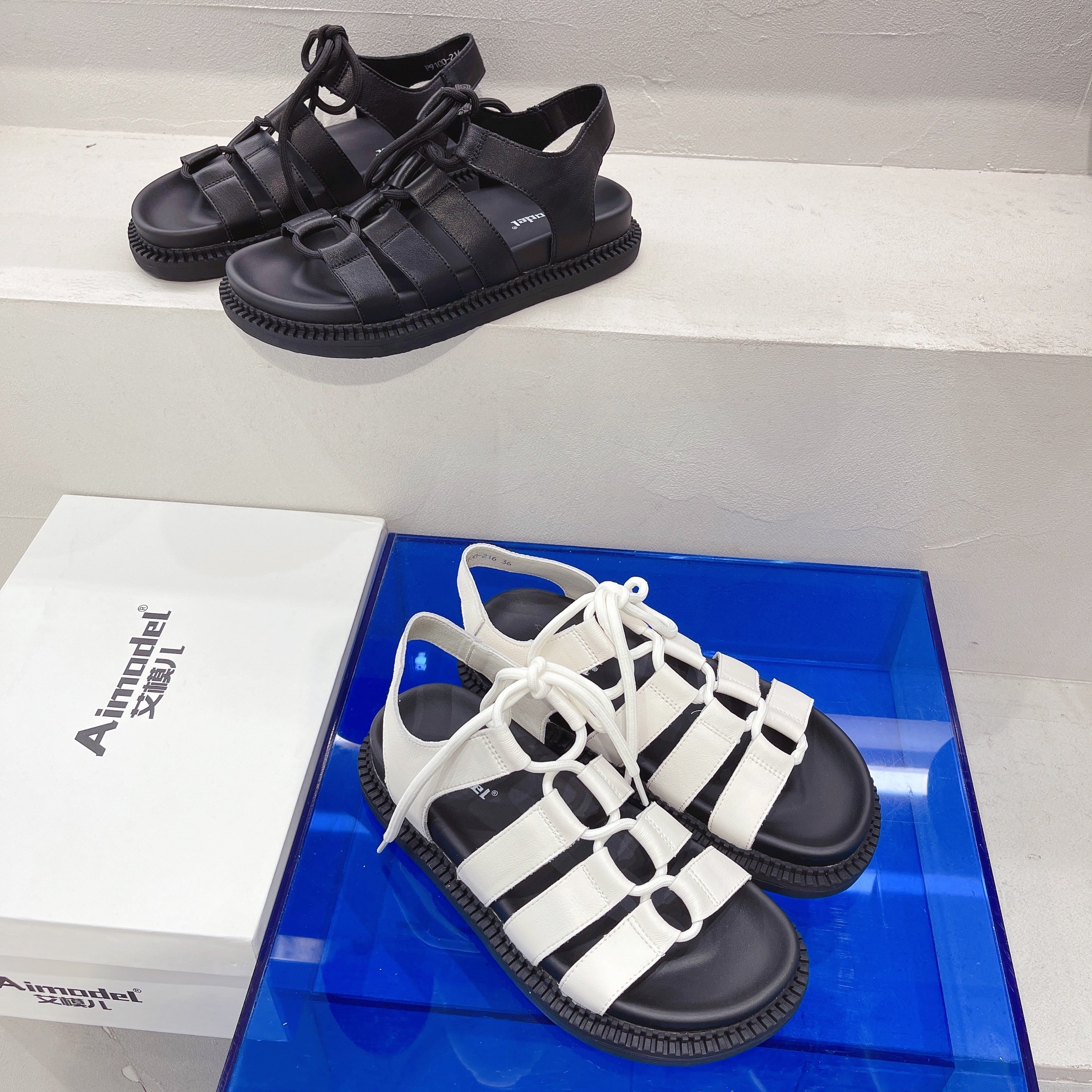 新款罗马凉鞋女夏平底凉鞋2023新款仙女风绑带厚底配裙子感罗马沙