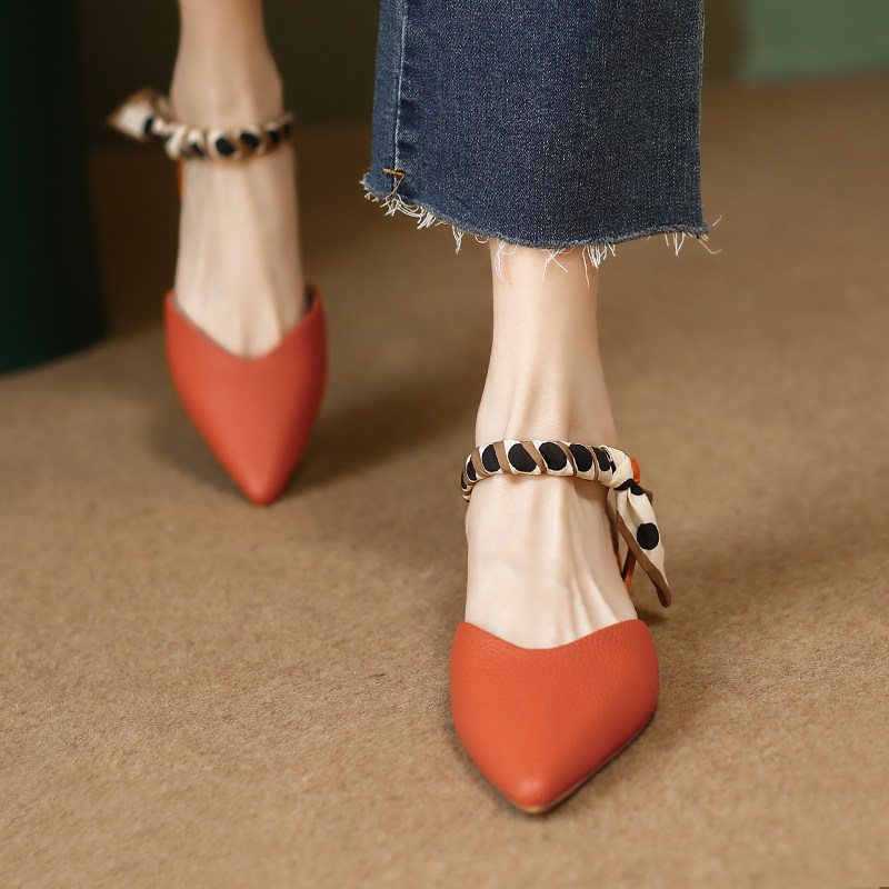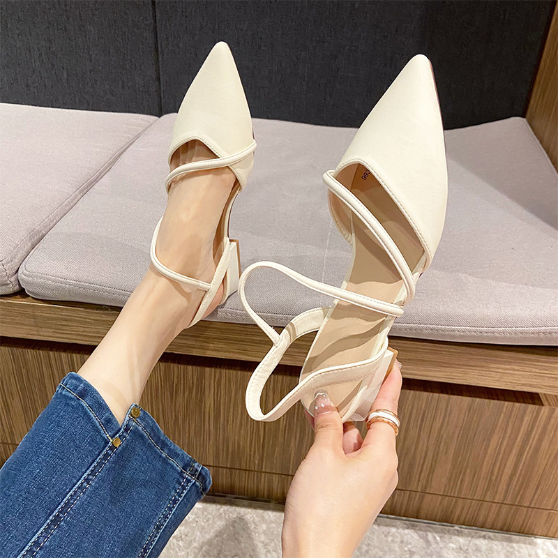 2023年夏季新款凉鞋绑带纯色尖头气质尖头后空平底鞋仙女风可外穿
