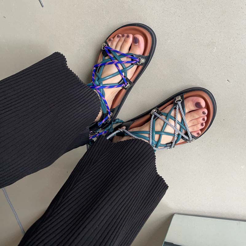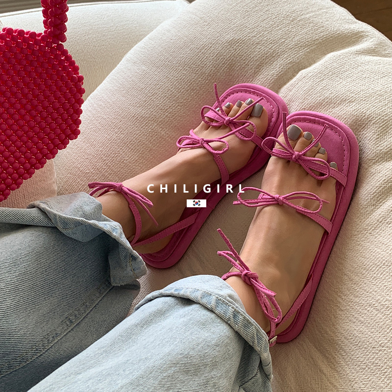 小池在首尔2022夏季新款脚踝绑带细带套趾平底舒适复古罗马凉鞋潮