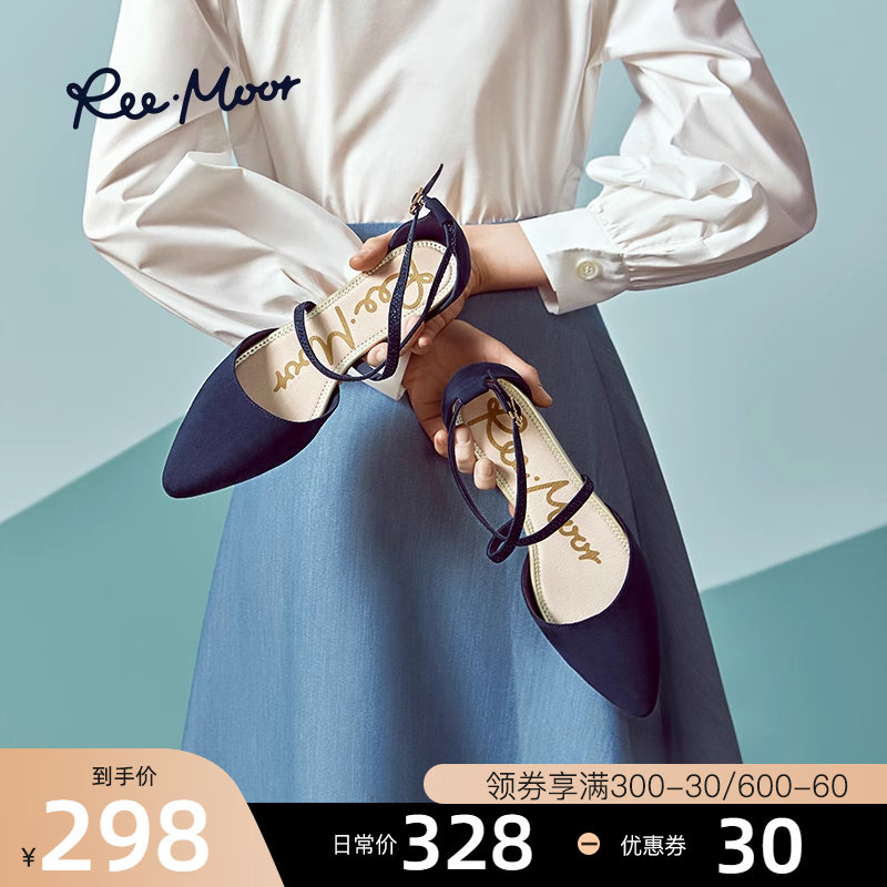 reemoor睿慕2023年新款夏季法式尖头仙女风气质绑带平底鞋凉鞋女