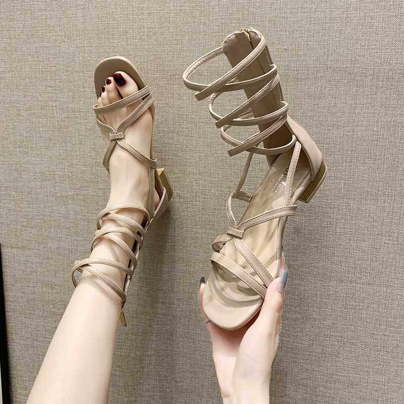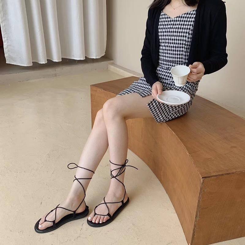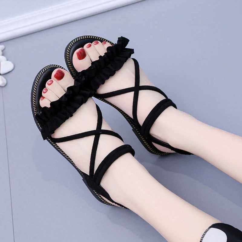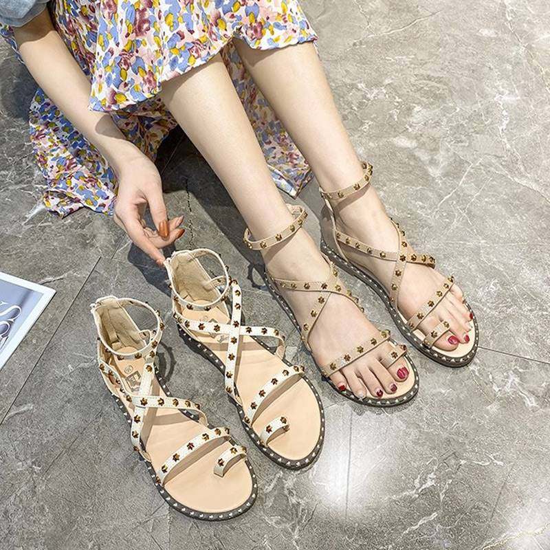 罗马凉鞋女夏网红ins百搭平底学生新款新款韩版绑带仙女风沙滩鞋