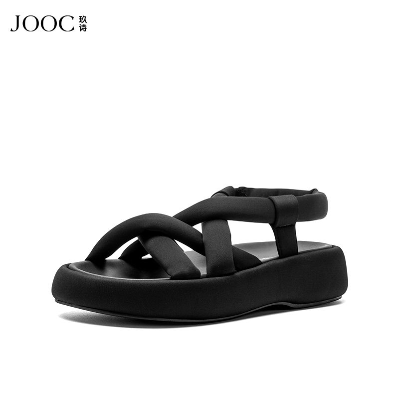 JOOC玖诗时尚凉鞋女2023夏新款休闲百搭沙滩外穿绑带平底凉鞋6864