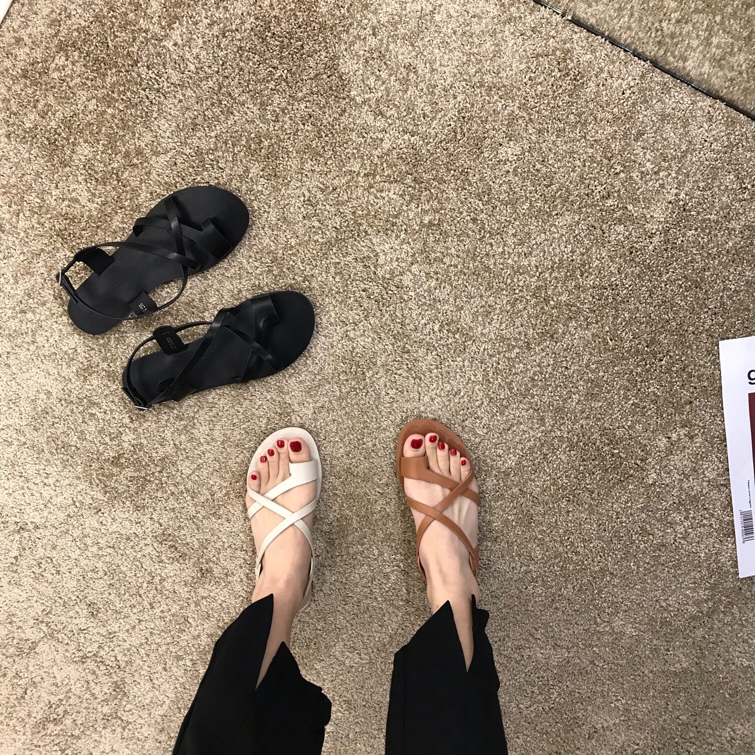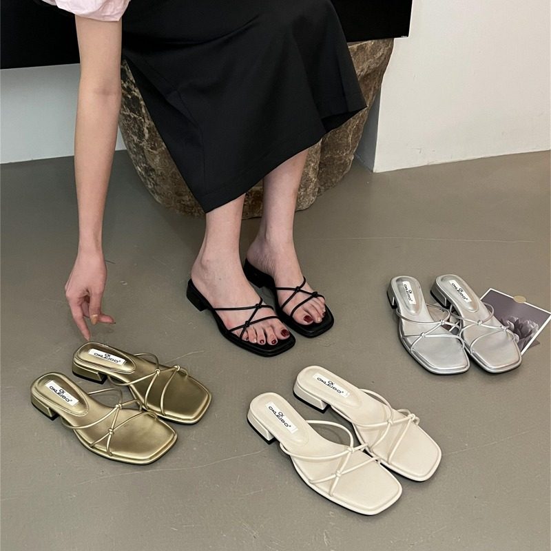 小池在首尔2022夏季新款罗马风圆头夹趾细带交叉绕脚绑带平底凉鞋