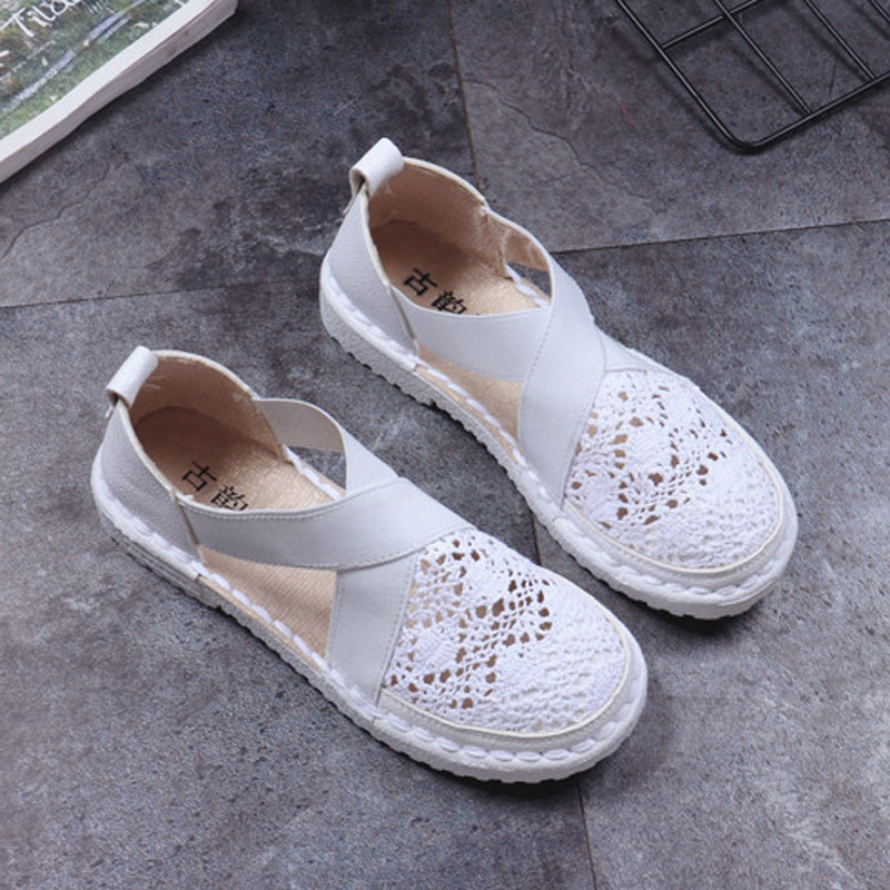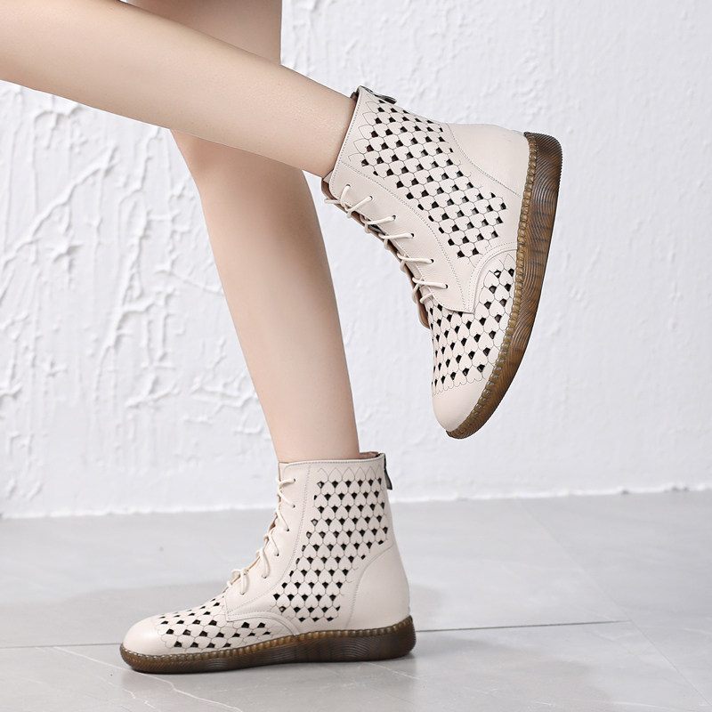 头层牛皮交叉绑带平底单鞋2023夏款牛筋软底鞋复古方头中空凉鞋女