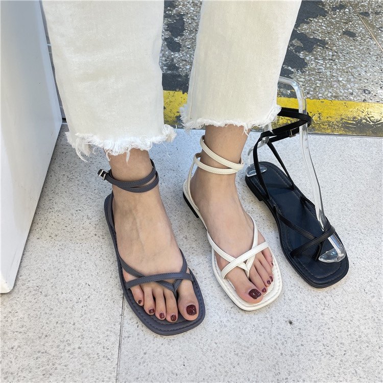 韩国东大门女鞋22夏季新款夹趾细带平底罗马风脚环绑带休闲凉鞋女