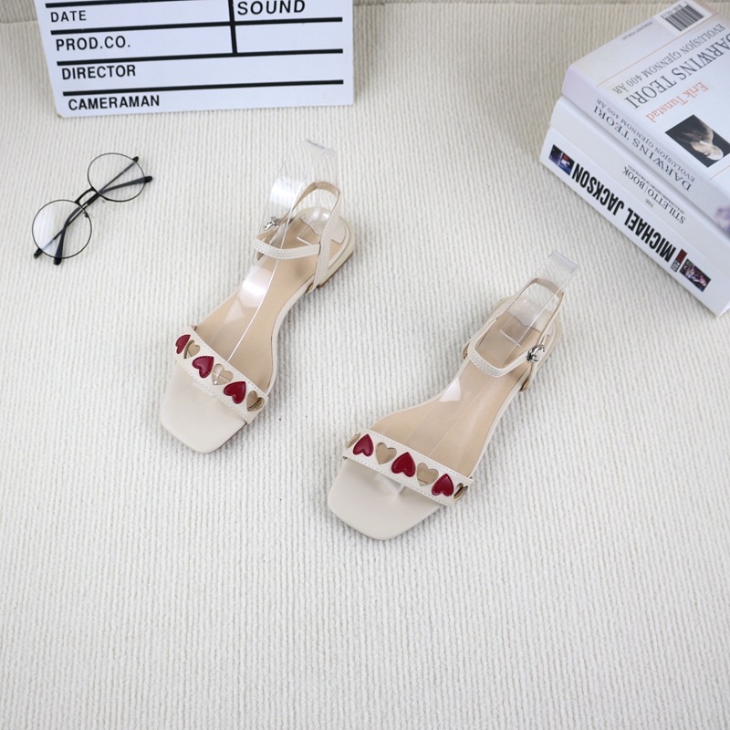37夏季新款撤柜平底露趾桃心镂空一字绑带中空韩版百搭女士凉鞋