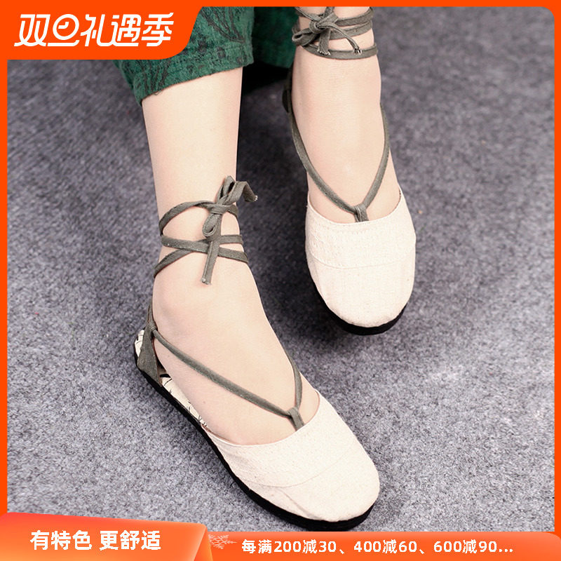 好货.复古凉鞋仙女风绑带女平底夏季新款温柔时尚百搭罗马鞋沙滩