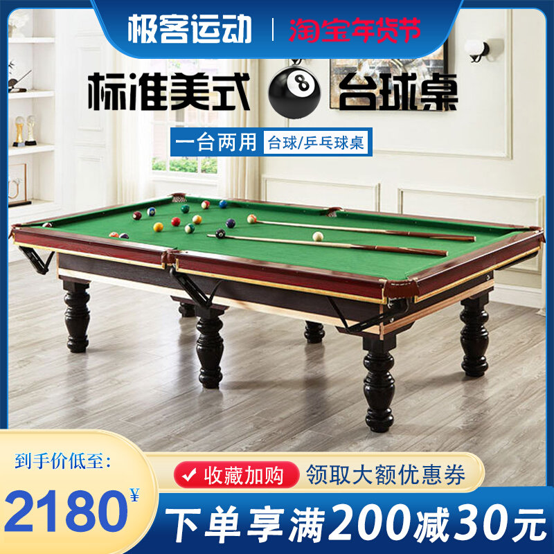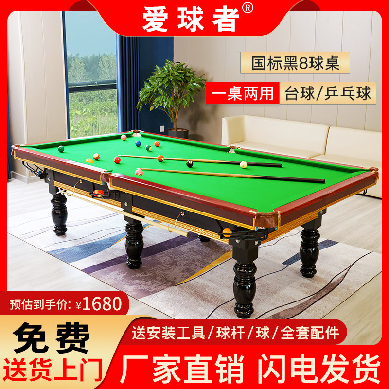 乐端台球桌标准型家用大理石中式黑八桌球台乒乓球二合一商用球厅