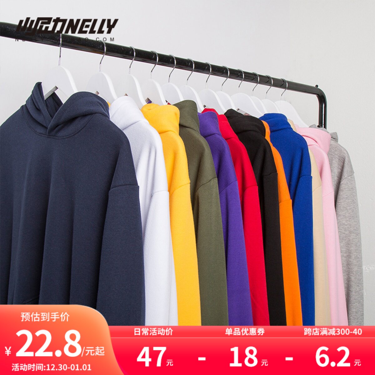 纯色连帽卫衣男女嘻哈套头加绒春秋休闲运动上衣宽松纯棉长袖外套