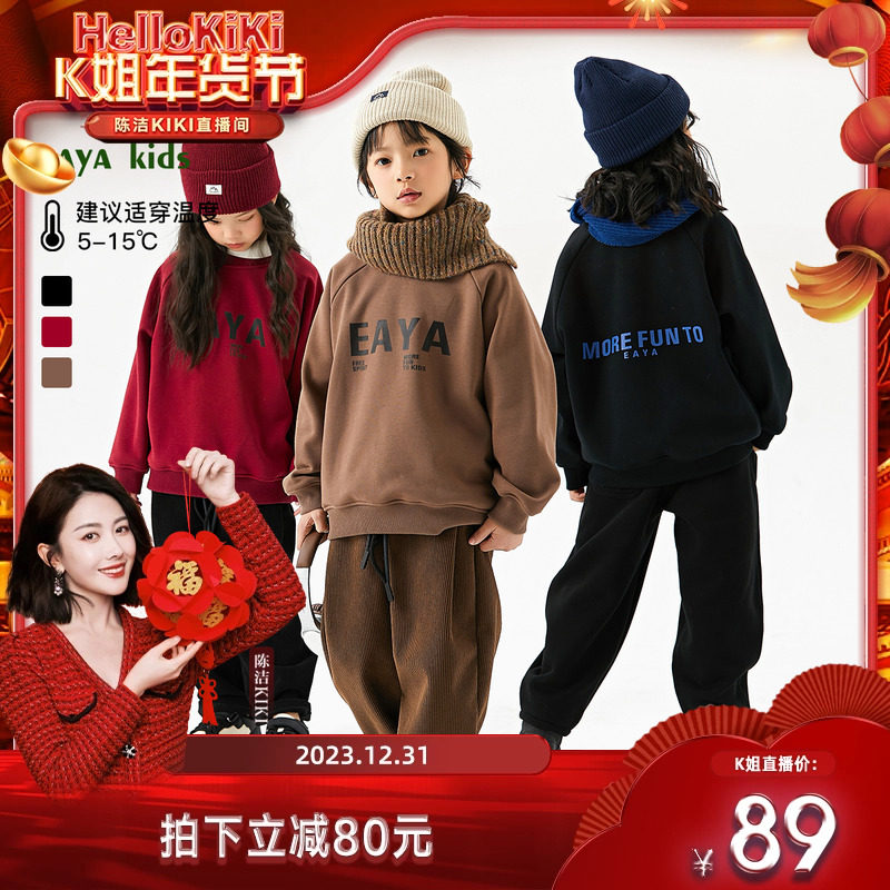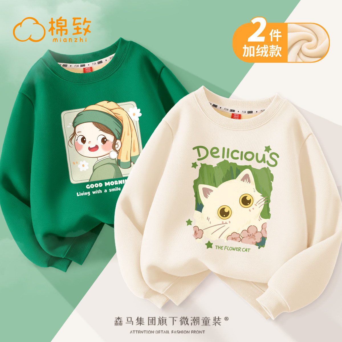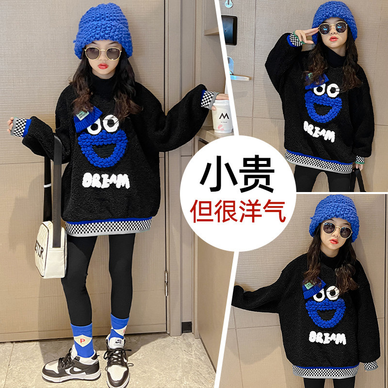 棉致女童加绒卫衣秋冬2023新款大童上衣女孩冬季衣服儿童冬装童装