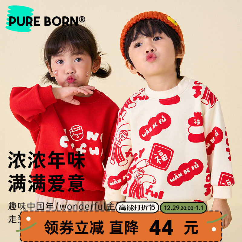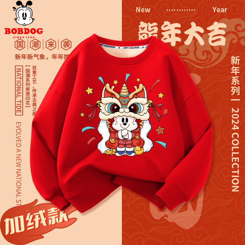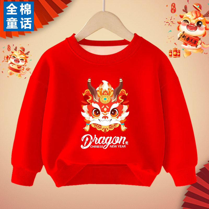 儿童拜年服2024龙年过年喜庆衣服男童新年装女童卫衣秋冬加绒加厚