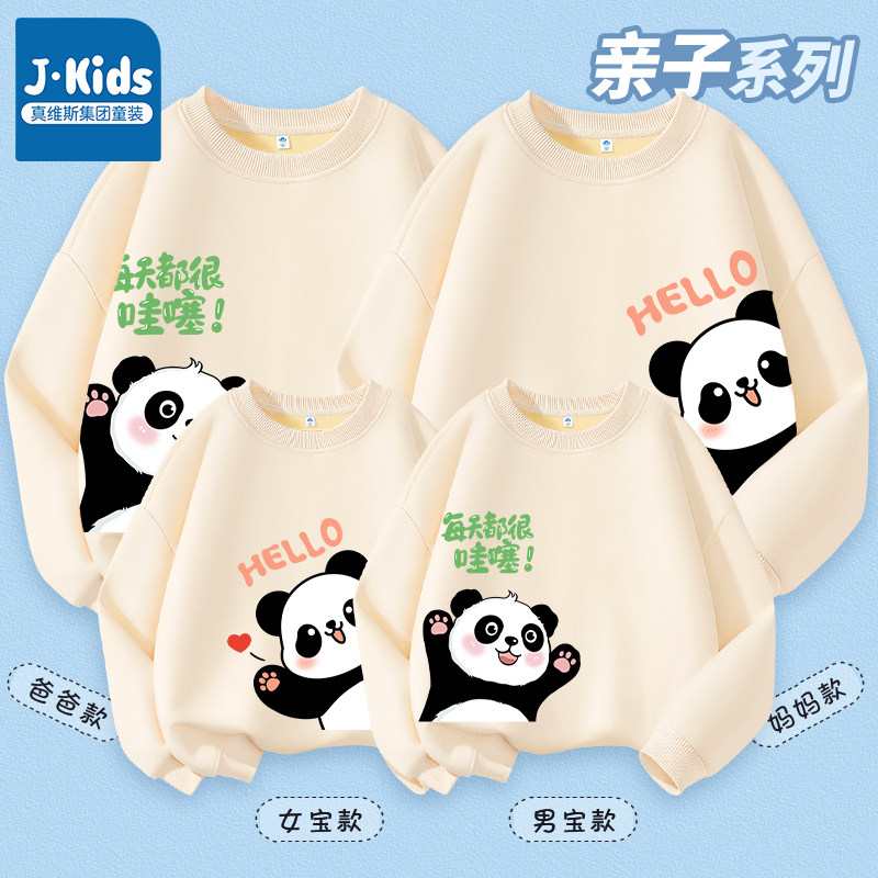 真维斯集团亲子装秋冬一家三四口全家福上衣儿童洋气熊猫加绒卫衣