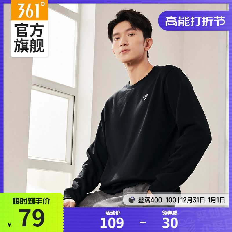 安踏卫衣男冬季圆领长袖套头衫打底衫针织宽松圆领运动上衣百搭