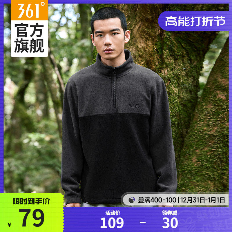 361运动卫衣男2023冬季新款半开襟拉链摇粒绒加绒加厚保暖上衣