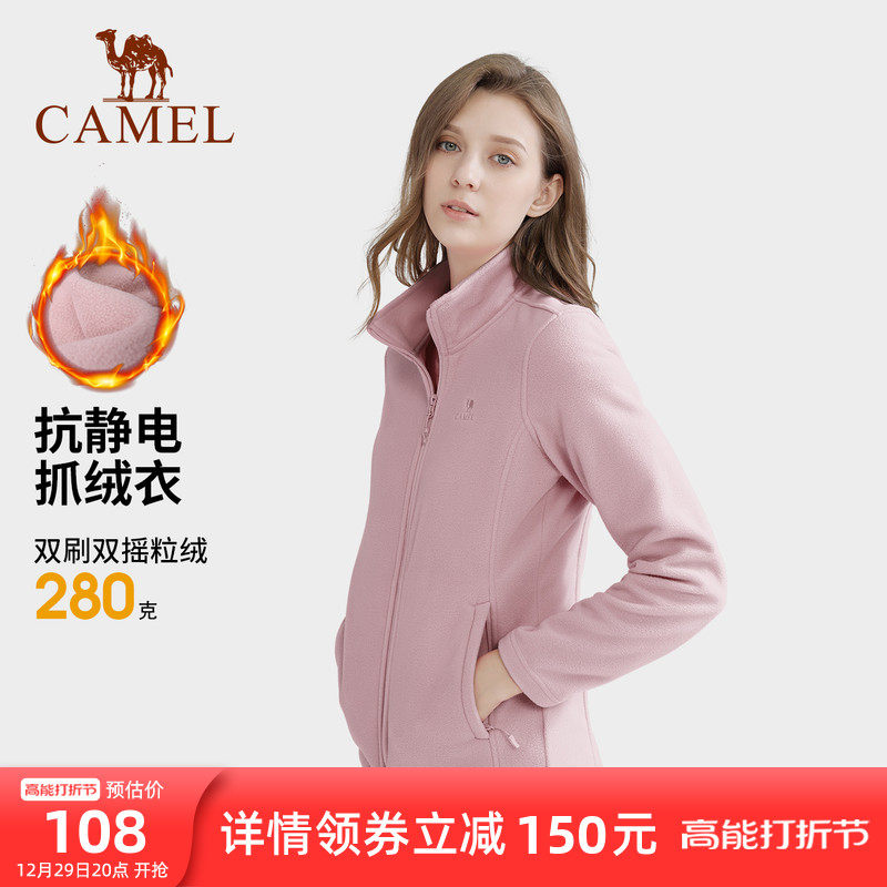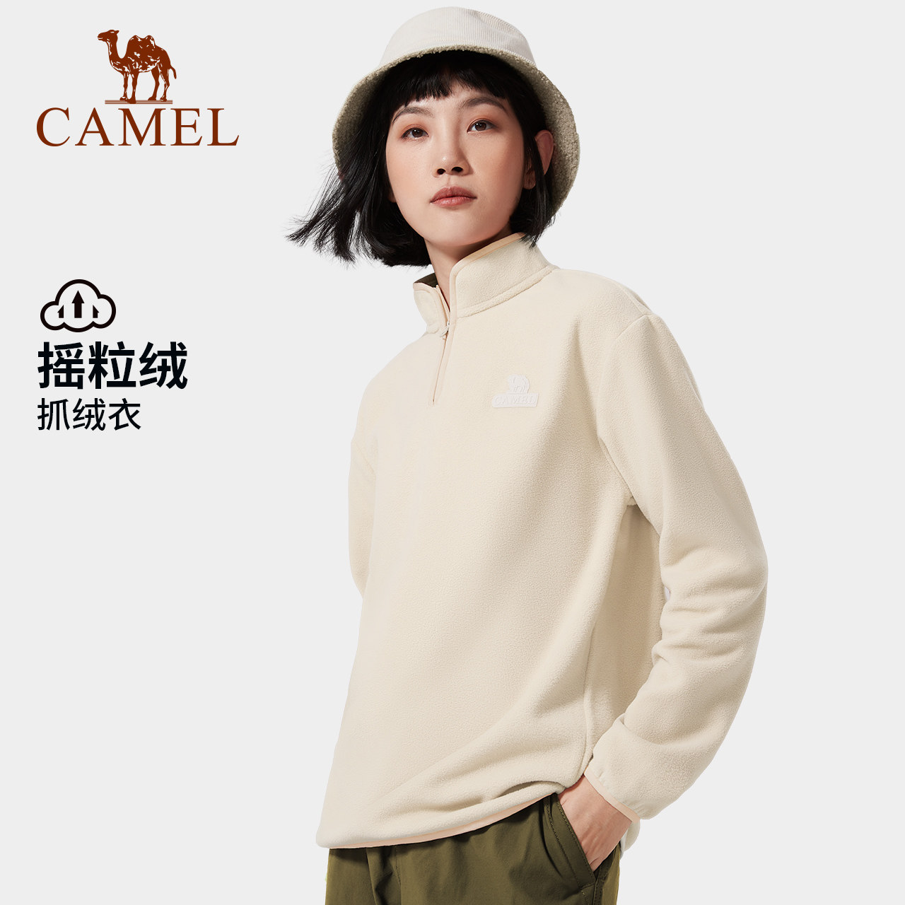 CAMEL骆驼户外抓绒衣女2023冬季摇粒绒上衣保暖套头卫衣加绒外套