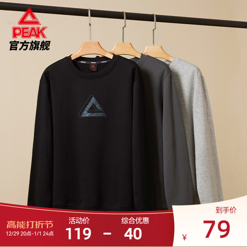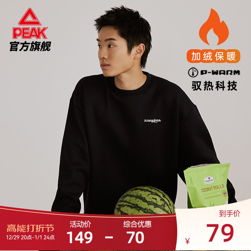 匹克运动卫衣男宽松圆领秋冬新款加绒保暖运动服加绒保暖上衣长袖
