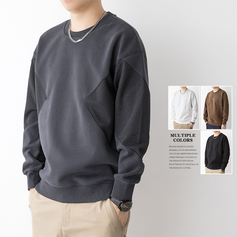 碳灰卫衣男秋冬季加绒圆领宽松套头潮牌拼接上衣春秋休闲打底衫男