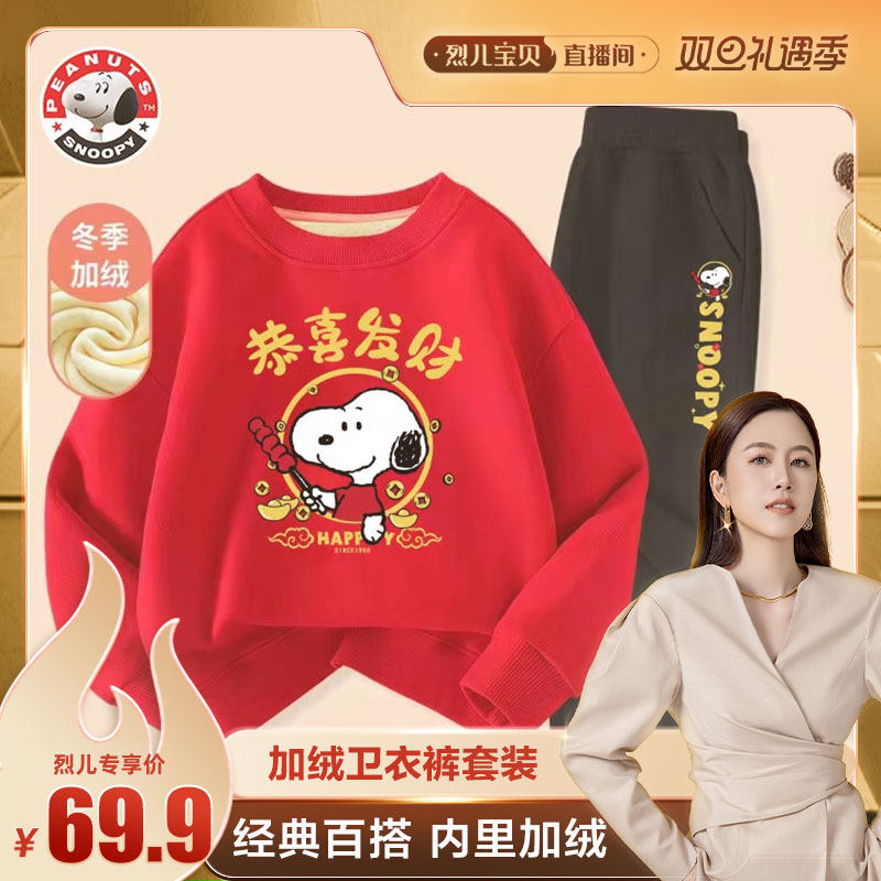 【烈儿宝贝直播间】史努比新款印花百搭加绒卫衣卫裤套装SZZJRYK