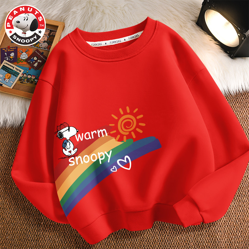 史努比男童羊羔绒加绒卫衣冬季2023新款红色上衣中大童保暖一体绒