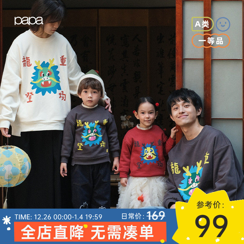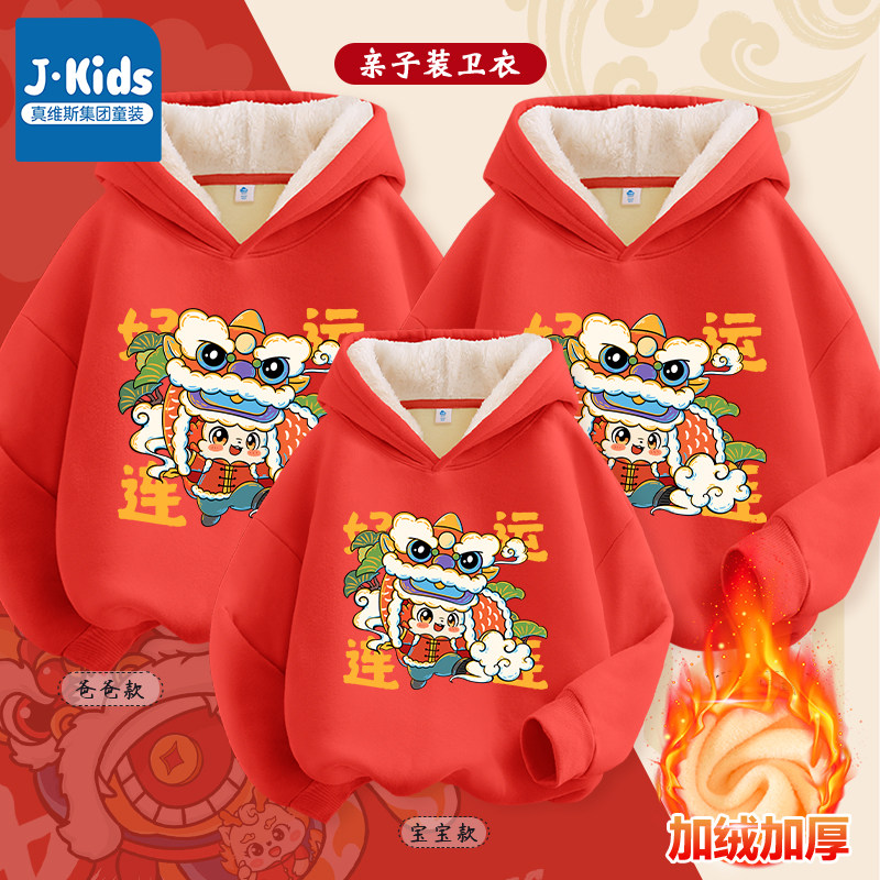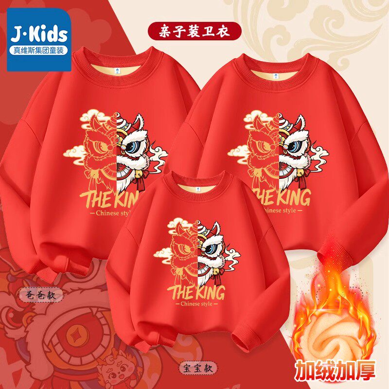 真维斯集团2024龙年亲子装一家三口红色本命年衣服母子装加绒卫衣