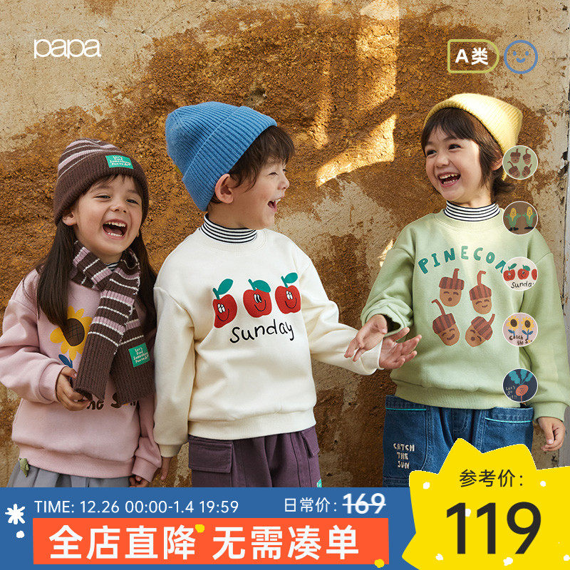 papa爬爬冬季儿童登山绒假两件卫衣男女宝宝加绒保暖洋气时髦潮