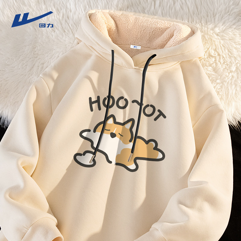回力超厚加绒卫衣男潮流加厚冬季连帽上衣秋冬款保暖羊羔绒棉服A
