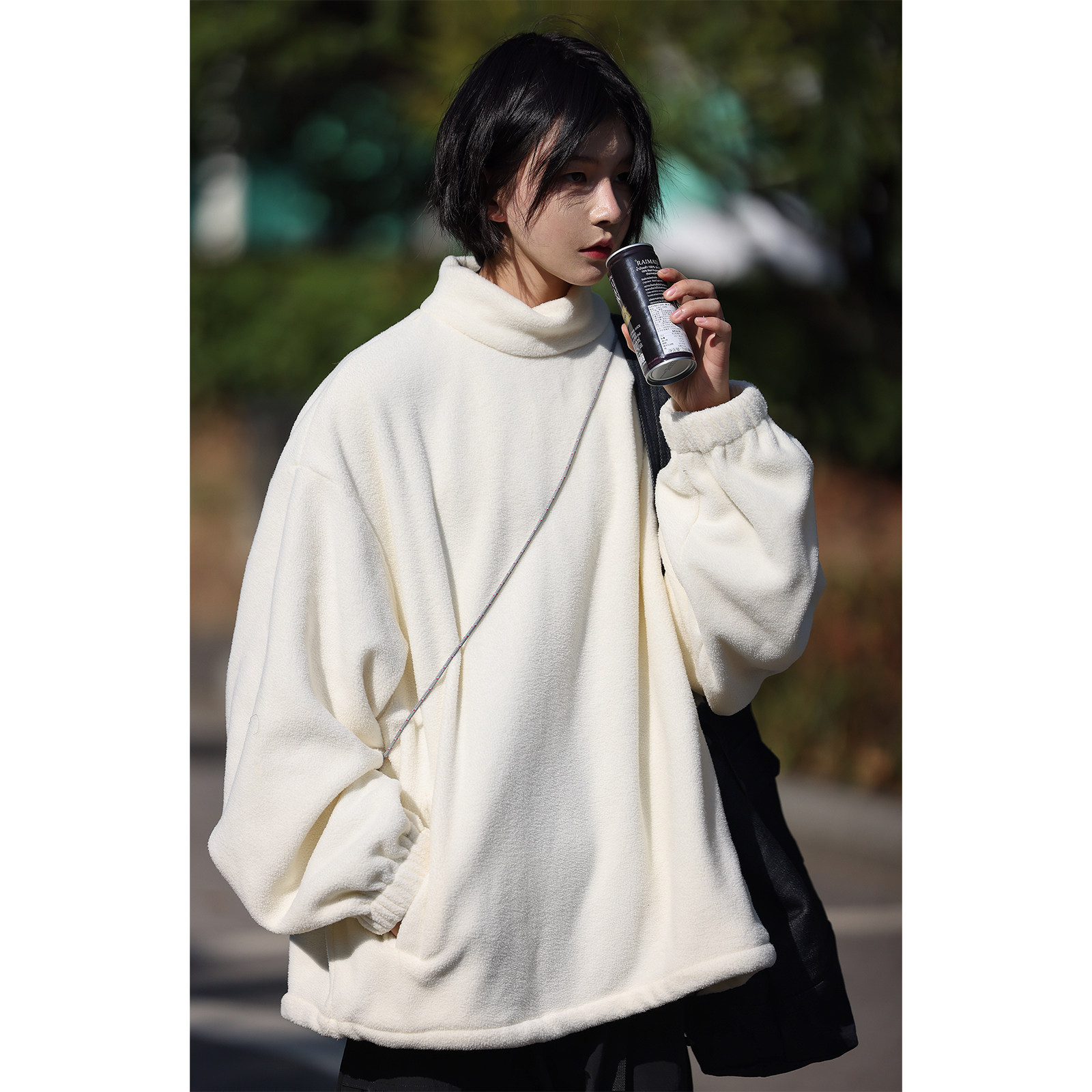 Nobodyknows 秋冬基础日系复古半高领摇粒绒保暖内搭纯色情侣卫衣