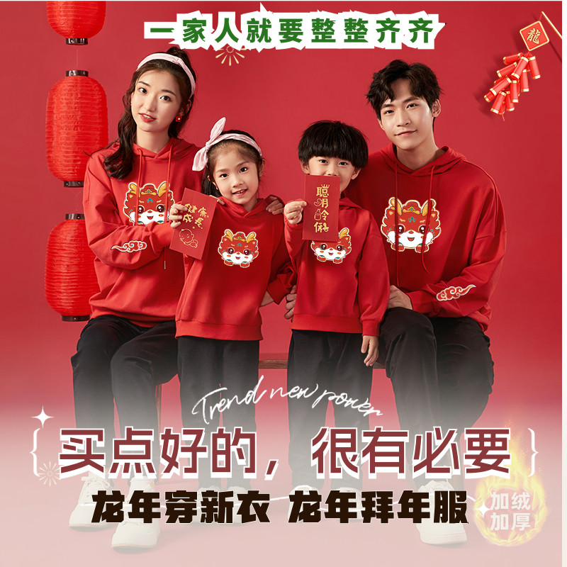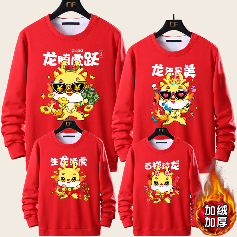 2024龙年亲子装过年一家四口家庭装全家福新年本命年加绒卫衣服冬