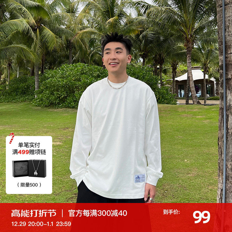 回力圆领卫衣男2023新款秋季白色男款运动无帽秋冬款男士加绒长袖