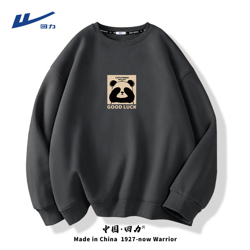 回力卫衣男生秋冬款加绒加厚熊猫运动衣2023新款冬季圆领衣服男士