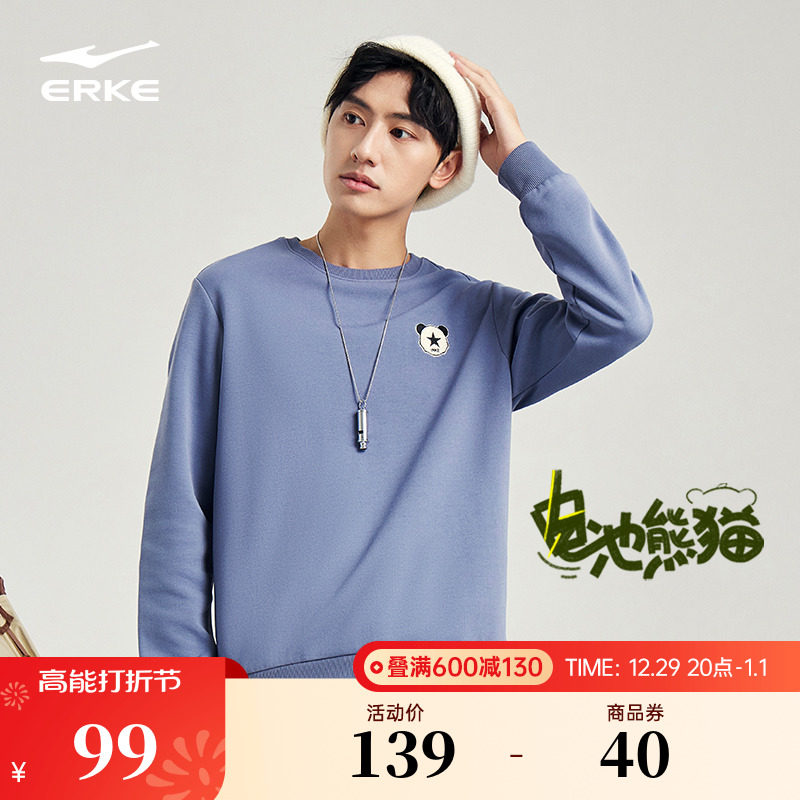 电池熊猫丨鸿星尔克卫衣男冬季男士运动服休闲情侣卫衣套头衫上衣