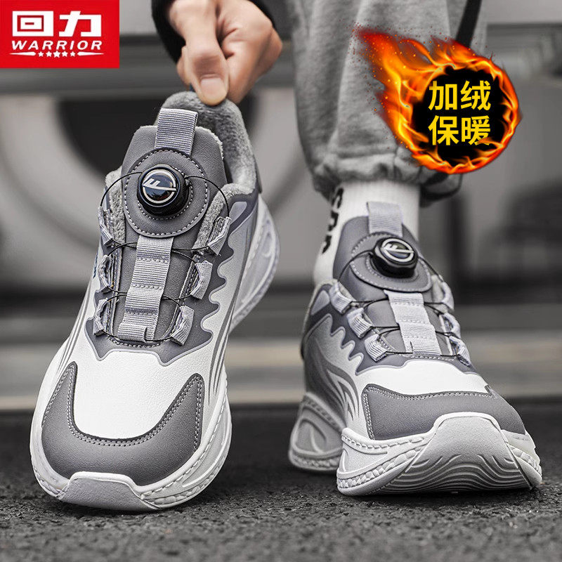 回力旋转纽扣运动鞋男鞋冬季加绒保暖学生皮面免系鞋带篮球跑步鞋