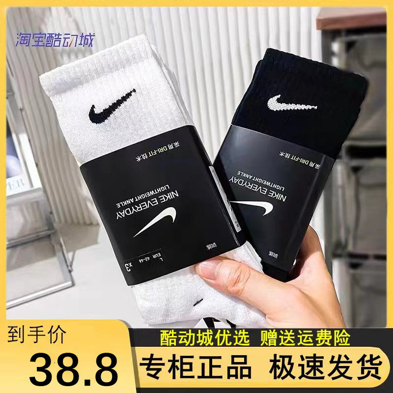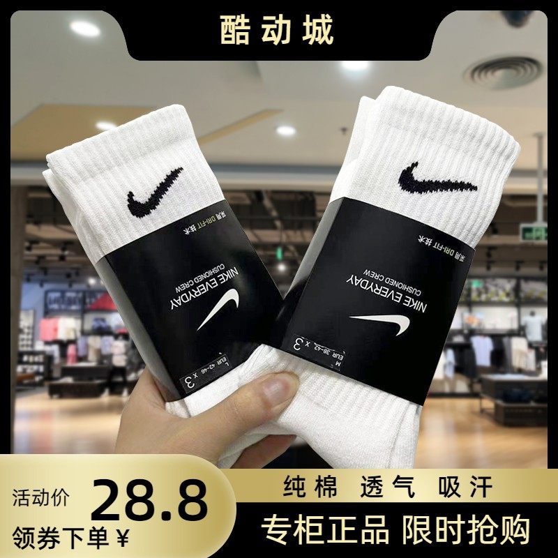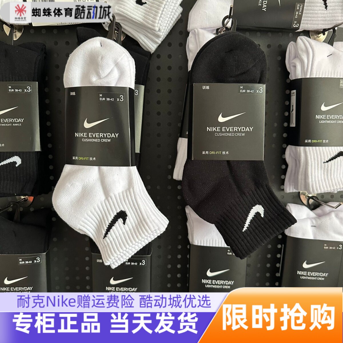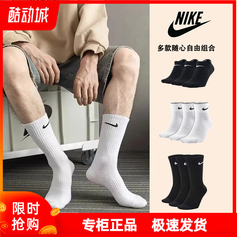 Nike耐克袜子男女纯棉中筒袜加厚毛巾底长筒篮球袜短筒黑白运动袜