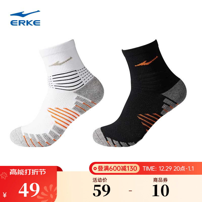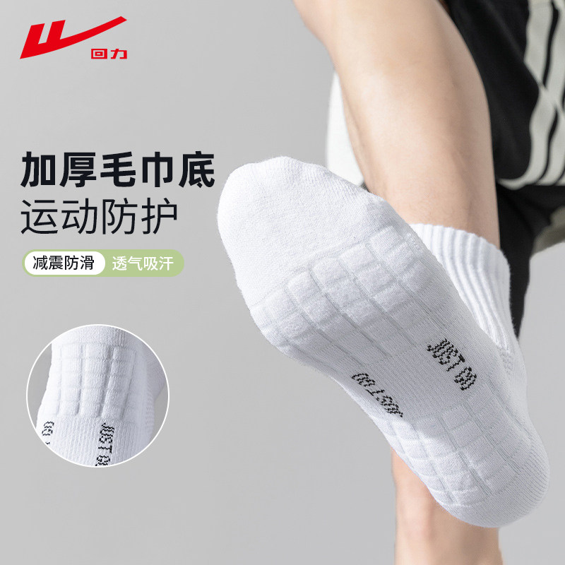 回力运动袜子男士吸汗透气跑步加厚毛巾底篮球袜女防嗅白厚中筒袜
