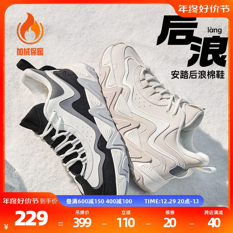 安踏波浪鞋高帮棉鞋男女2023新款冬季新款保暖加绒厚底增高休闲鞋