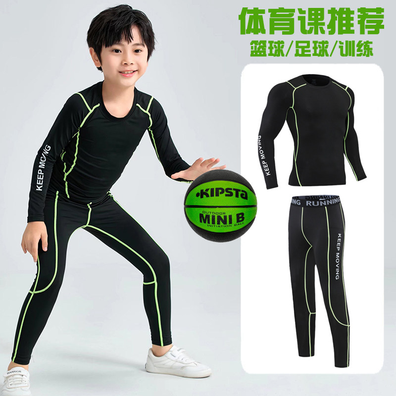 儿童运动紧身衣训练服套装篮球打底速干衣滑雪秋冬加绒足球健身服