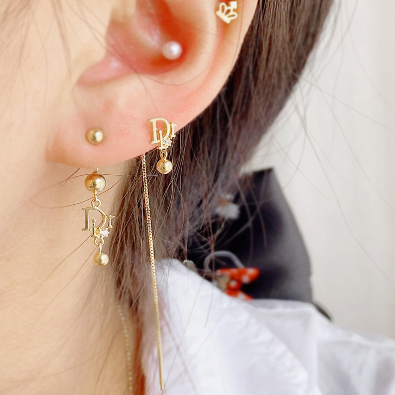 韩国纯14k金耳钉女 气质网红D字耳钉坠金球k纯金拧螺丝耳骨钉