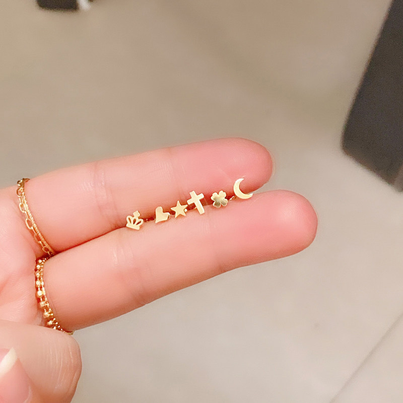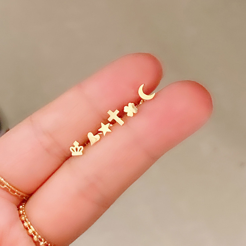 蓝莓甜心韩国纯10k金黄金耳钉 小巧精致星月皇冠k纯金拧螺丝耳钉